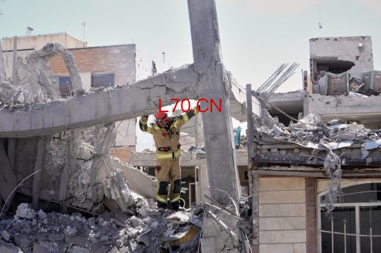 3月 27日,一名急救人员在德黑兰遭到袭击后检查一栋建筑物。