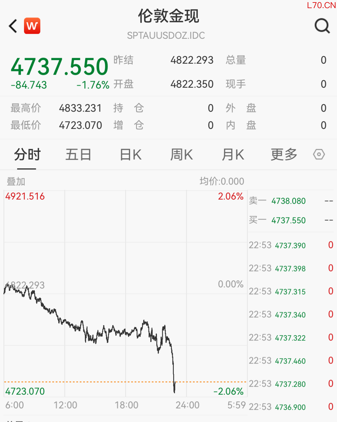 近期美以伊冲突局势反复,国际油价随之剧烈震荡。国际大宗商品价格巨幅震荡。4月21日晚间,金银快速下跌,截至22点50分,现货黄金直线下挫跌破4740美元关口,日内跌1.8%,现货白银跌超3%,报77.2美元/盎司。