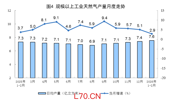 国家统计局:1—2月份,规上工业天然气产量同比增长2.9%